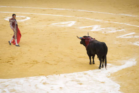 Bull in the bullring on traditional spectacle on Spain