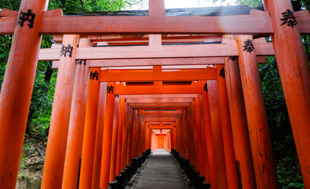 Red torii gate at Fushimi Inari Shrine in Kyoto, Japan