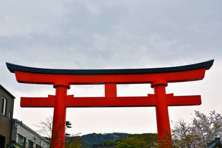 A giant torii gate in front of the Romon Gate at Fushimi Inari Taisha(Shrine),Fushimi-ku,southern Kyoto,Japan