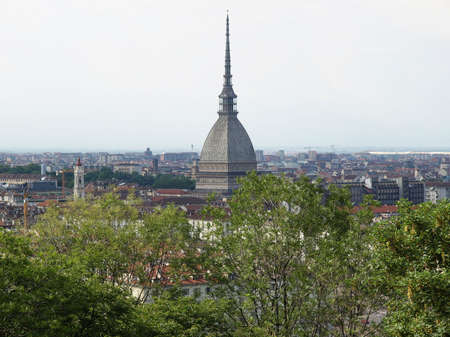 Turin skyline panorama seen from the hill, with Mole Antonelliana (famous ugly wedding cake building)