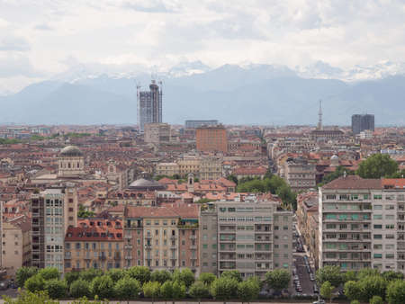 City of Turin (Torino) skyline panorama seen from the hill - wide angle