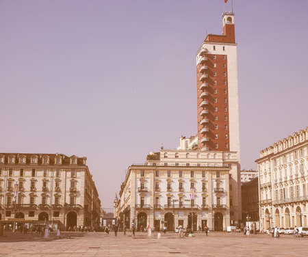 Vintage looking Piazza Castello central baroque square in Turin Italy
