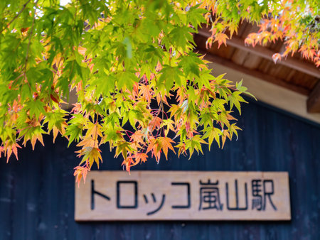 Kyoto, NOV 16 2013 - Daytime view of the sign of Torokko Arashiyama train station