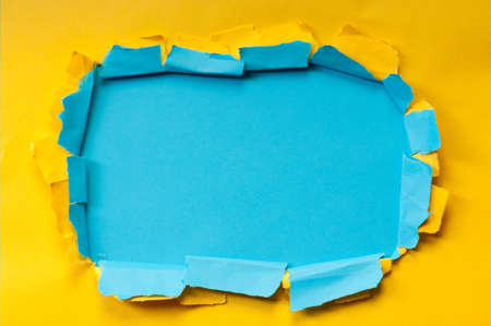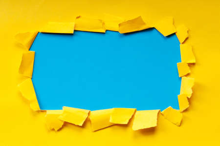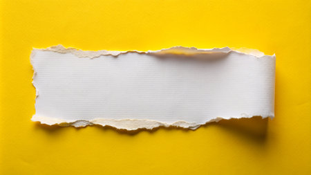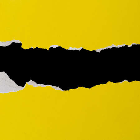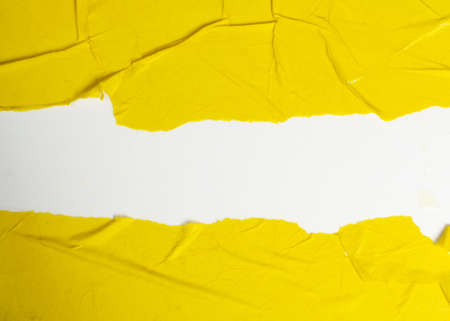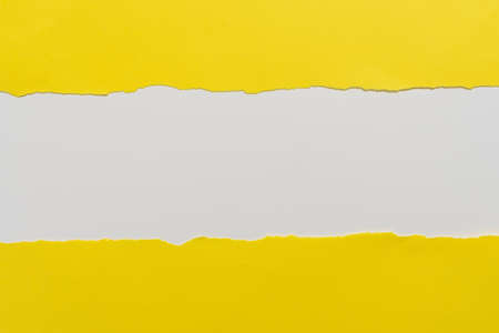 abstract background concept with ripped blank white paper on vivid yellow paper, copy space for your text.