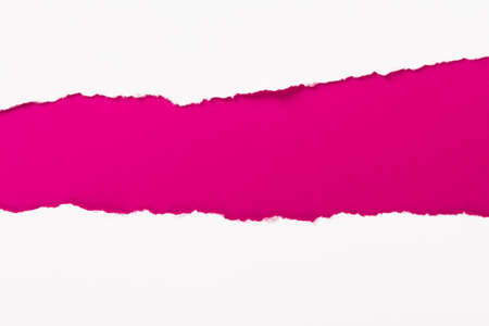 Teared, ripped paper on pink background.