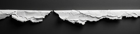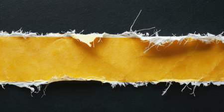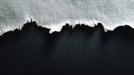 Close-up view of torn paper edges against a black background, creating a striking contrast. The texture and shadows add depth and artistic appeal.