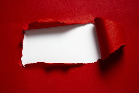 copyspace torn red paper with white background in the middle and hard shadows for pasting text