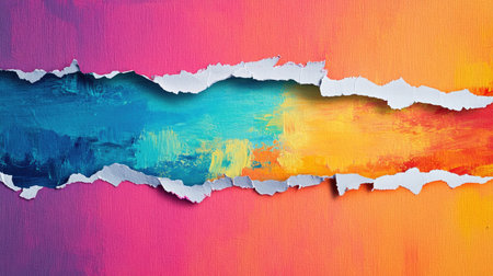A striking abstract image featuring vibrant colors with torn paper edges, creating a dynamic and creative background for various artistic projects.