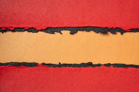 paper abstract in red and orange with a copy space - sheets of handmade cotton rag paper, blank web banner for alert, warning or danger