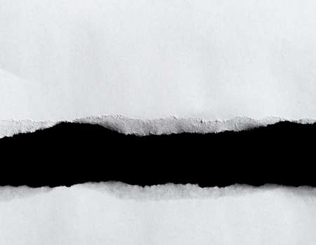 Black ripped open paper on white paper background