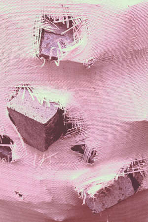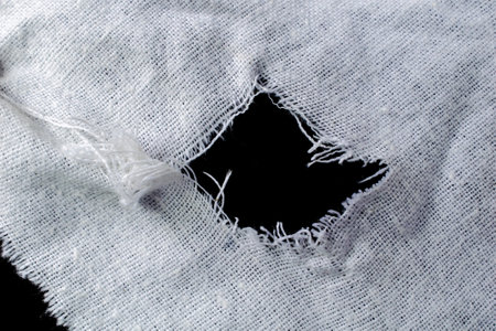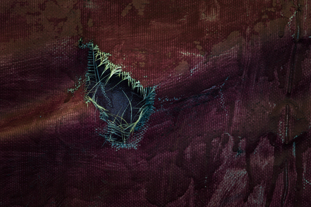 Close up of frayed fabric revealing texture and wear details