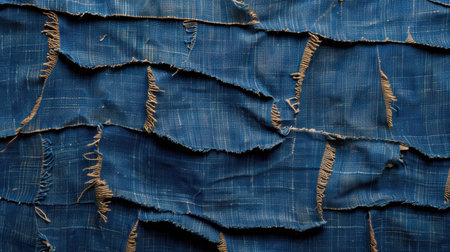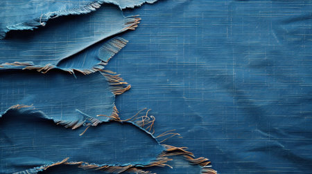 Textured blue fabric with frayed edges, showcasing layers of woven material. deep blue tones create rich visual appeal, perfect for textile design or fashion inspiration