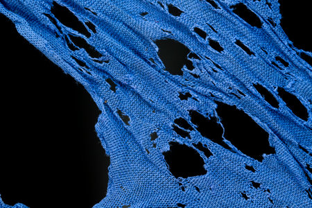 blue clothing material background damaged and holed
