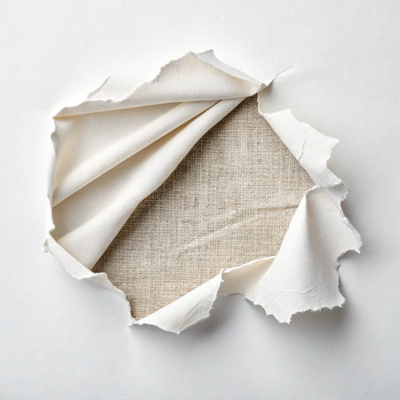 Simplistic and elegant background featuring a textured fabric with a ripped edge, perfect for artistic projects, design presentations, and creative layouts.