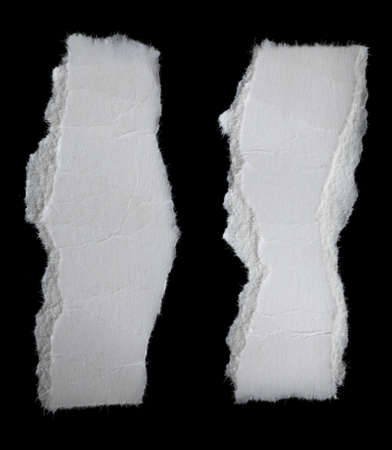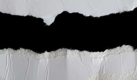 Artistic shot of irregular ripped paper edges with curled fibers, placed against a deep black backdrop for high contrast