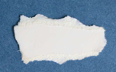 Piece of torn paper on a denim canvas