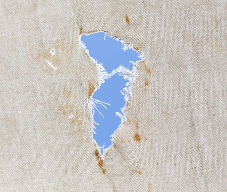 a hole in the fabric of the old against the blue sky