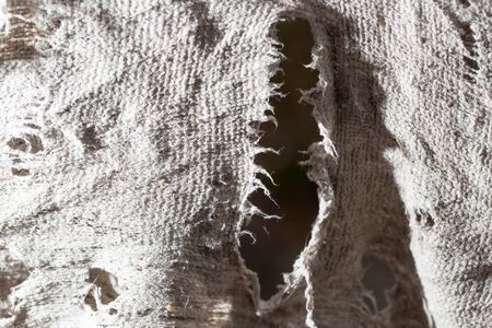torn old white rag with holes on a black background