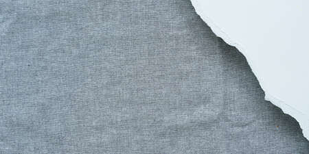 ripped white paper on textured of blank gray cotton for background.