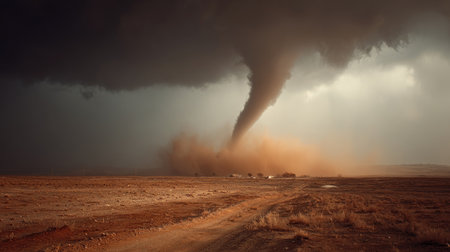 Intense and violent image of a tornado as a natural force and threat generated by AI