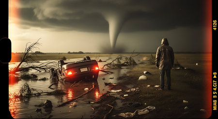 Intense and violent image of a tornado as a natural force and threat generated by AI
