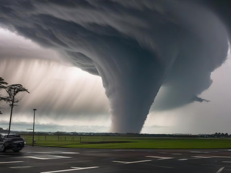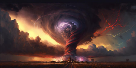 An AI generated illustration of a dramatic tornado swirling through the sky