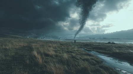 AI Generated. A Powerful Tornado Forms Under a Dramatic Stormy Sky