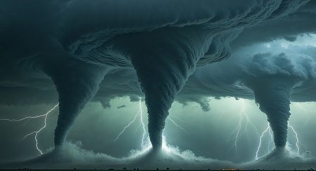 Dramatic tornado swirling amidst lightning thunderstorm raw force of nature disaster