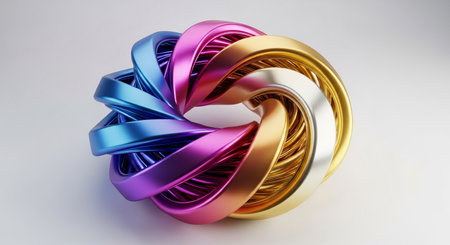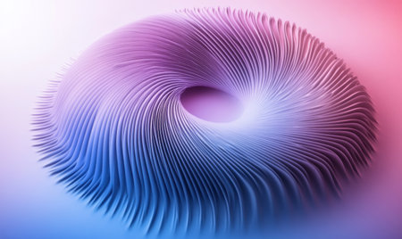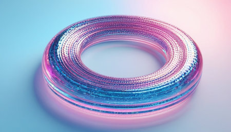 Abstract 3D render featuring a torus shape with a gradient from blue to magenta. Luminous white lines accentuate the curves, creating a modern, eye-catching design.