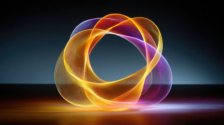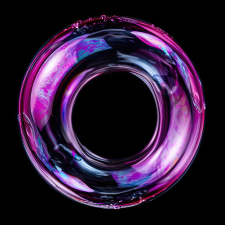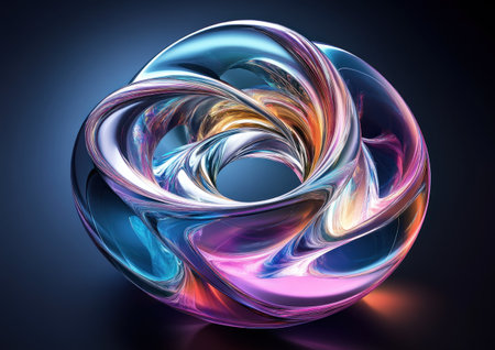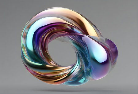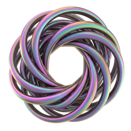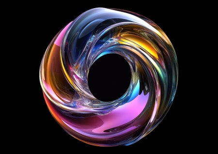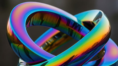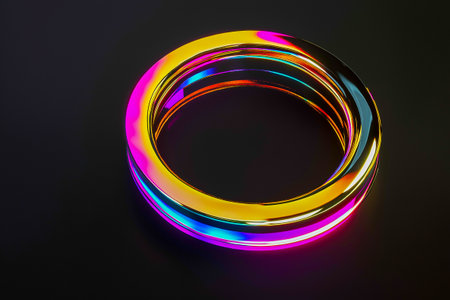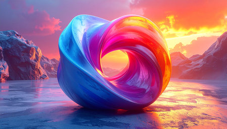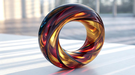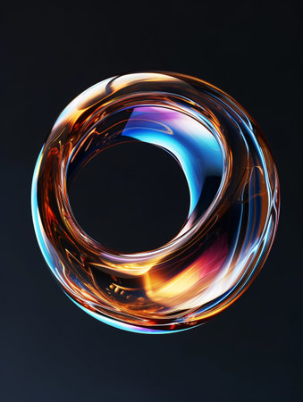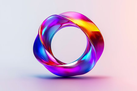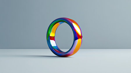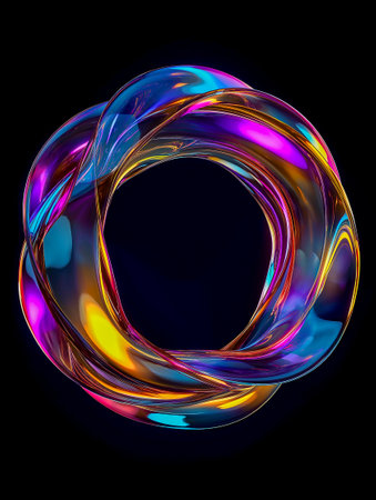 This vibrant and colorful abstract ring features a smooth, reflective surface that showcases stunning light effects, perfect for modern designs and artistic concepts.