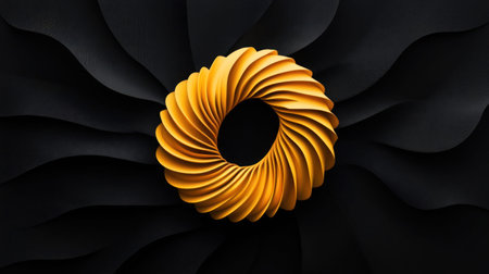 A stunning golden spiral design set against a dark, textured black backdrop, creating a visually striking contrast.