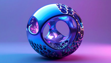 3d rendering of abstract metal object with blue and purple background.