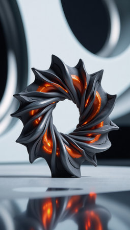 A dynamic detailed 3D rendered image featuring an intricate abstract shape against a captivating futuristic backdrop