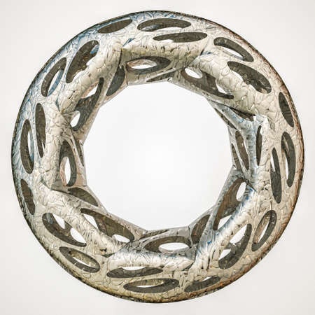 abstract three-dimensional gray ring with holes on a white background. textured gray torus. 3d render illustration