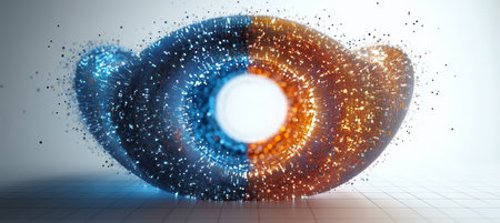 A colorful, glowing circle with a blue and red swirl