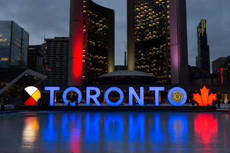 Toronto, ON, Canada – December 19, 2022: Toronro sign at Nathan Phillips Square in Downtown Toronto