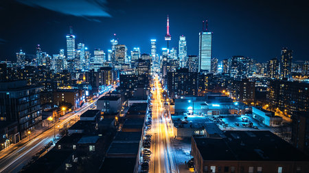 Toronto night view and CN Tower. Shooting Location: Toronto