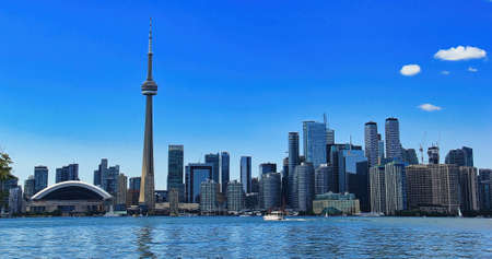 Panoramic view of Toronto skyline and CN Tower in a sunny day, Ontario, Canada