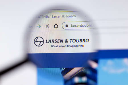Saint-Petersburg, Russia - 18 February 2020: Larsen and Toubro company website page logo on laptop display. Screen with icon, Illustrative Editorial.