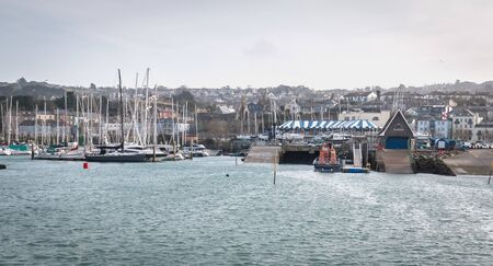 ST. PETER PORT, GUERNSEY, UK - AUGUST 16, 2017: Scenic view of a bay in St. Peter Port in Guernsey, Channel Islands, UK.