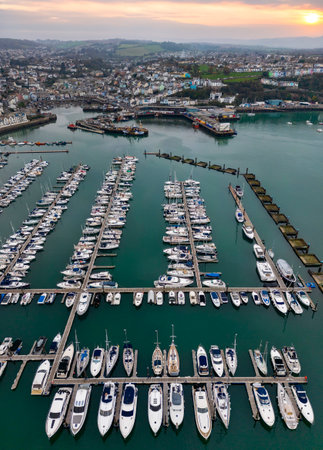 Aerial view of the marina and harbor at Brixham on the south coast of Devon in the southwest of England.