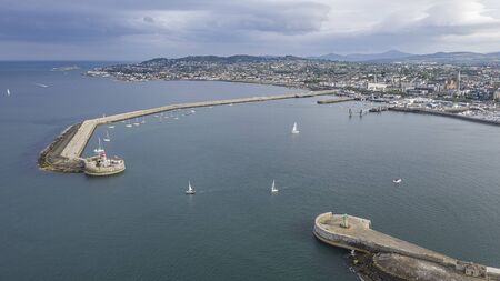 Aerial view of sailing boats, ships and yachts in Dun Laoghaire marina harbour, Ireland