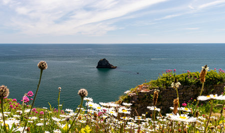 Beautiful seaside landscape on a sunny day. Brixham Devon UK.