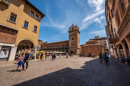 Mantua, Church Rotonda di San Lorenzo in Romanesque style (1083-XI century) and the medieval Palazzo della Ragione (XI-XII century). Piazza delle Erbe, Lombardy, Italy, Europe.