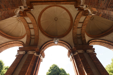 MILANO, ITALY, JULY 19, 2019: Courtyard of Castello Sforzesco in Italian city Milano