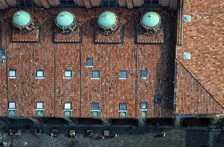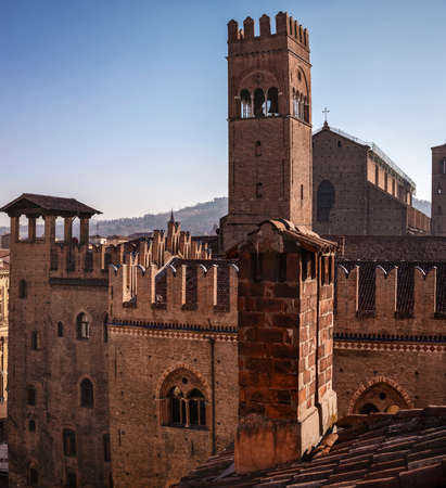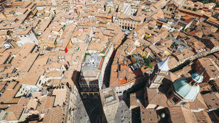BOLOGNA, ITALY, on February 12, 2020. The top view on the red roofs of old city