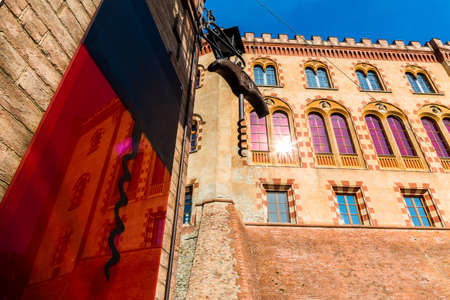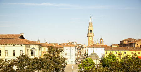 Casale Monferrato view under blue sky, with Torre CIvica and theatre