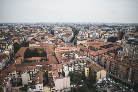 MILAN, ITALY - SEPTEMBER 27: View from Garibaldi Towers on September 8, 2013. Garibaldi Towers are two important modern skyscrapers, 100 meter high, energy self-sufficient thanks to solar panels and insulating materials
