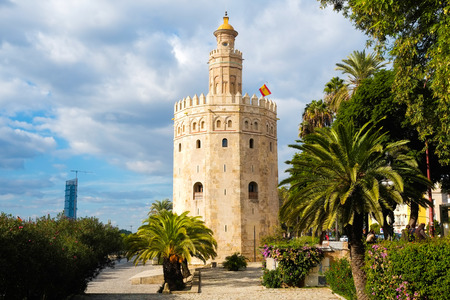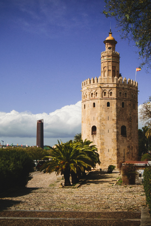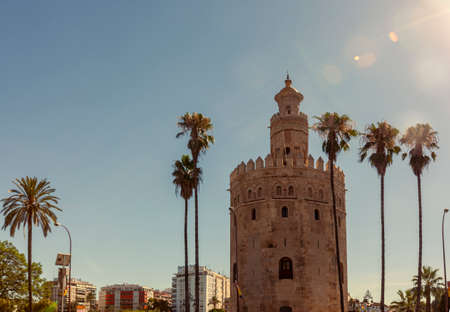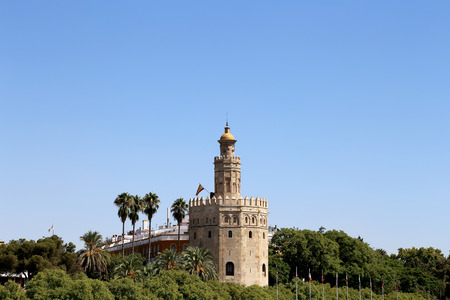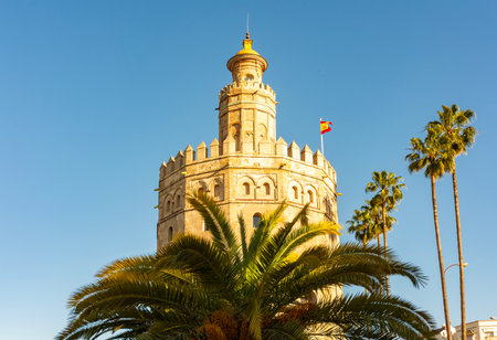 Scenic view of the Golden Tower in Seville on a sunny day. Spain. Andalusia.