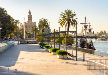 The embankment of the Guadalquivir river in Seville with Torre del Oro, Spain